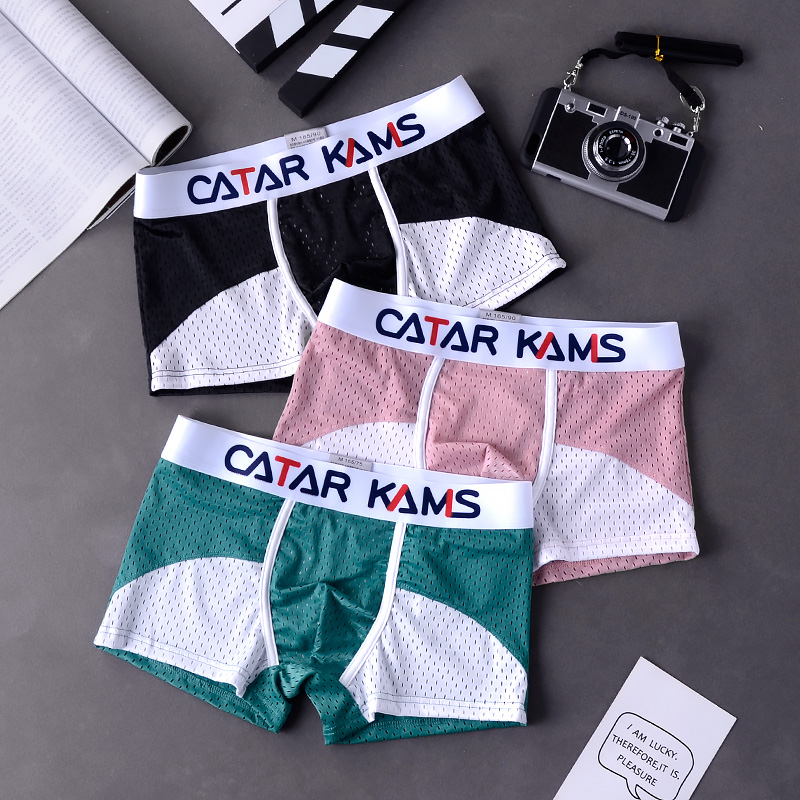 男士冰丝内裤男薄款透气四角裤衩夏季个性平角裤潮流青年网纱裤头热门设计联盟服务商
