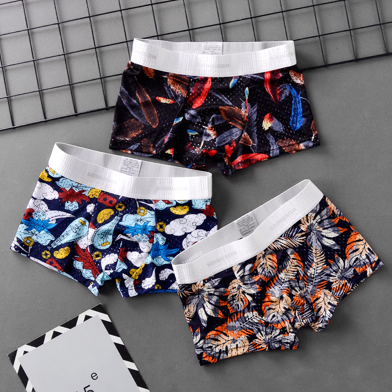 男士内裤男冰丝四角裤青年平角个性潮流裤头夏季透气薄款网纱裤衩热门设计联盟服务商